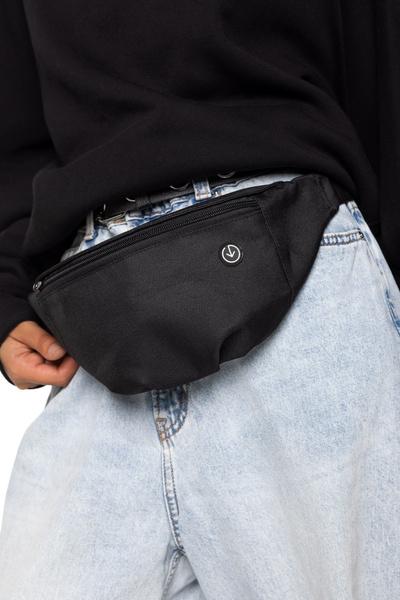 Eine schwarze Hüfttasche aus strapazierfähigem Polyester ist die perfekte Alltagslösung.